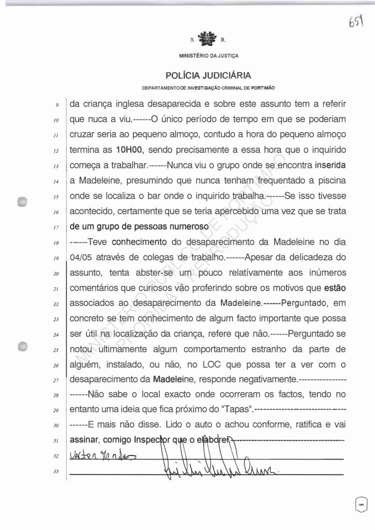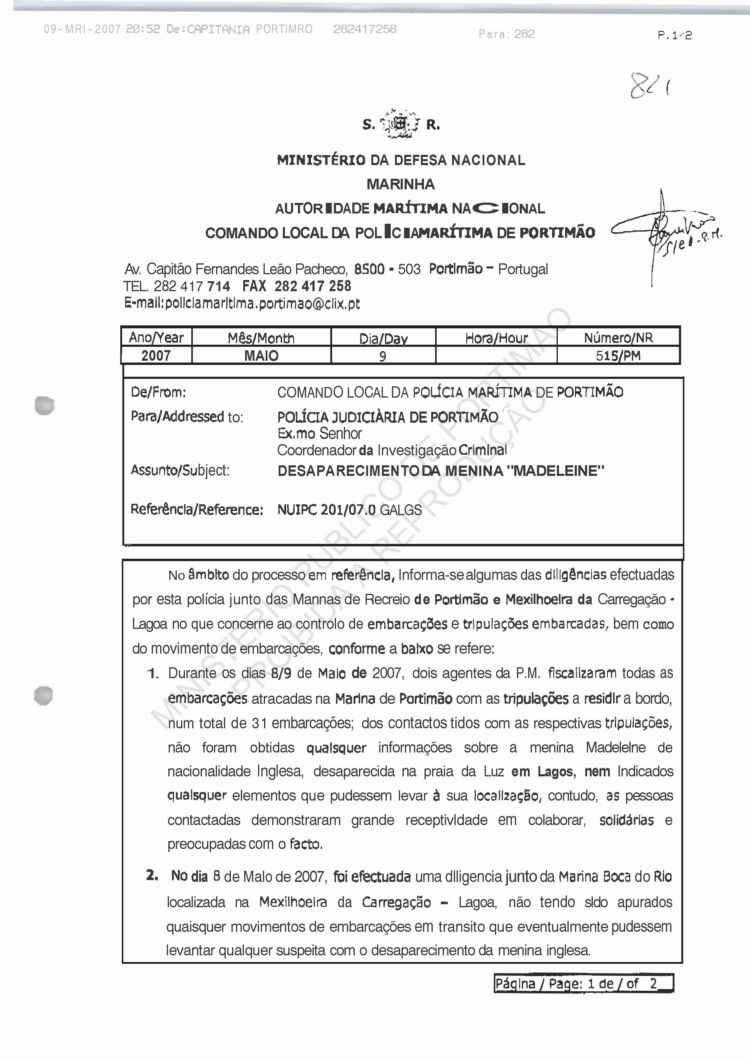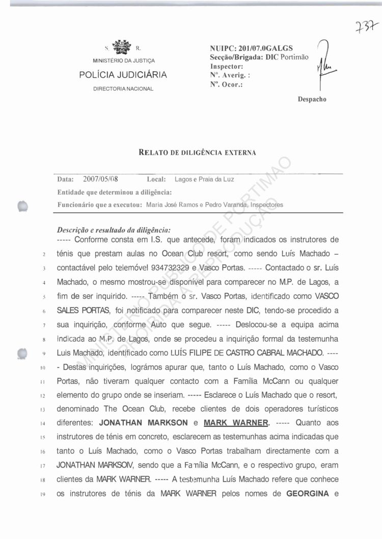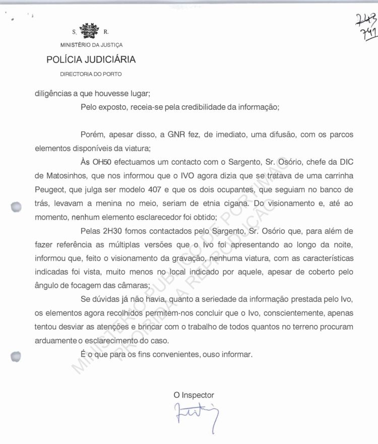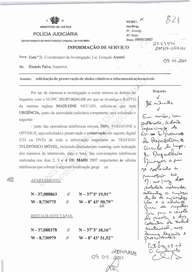 Costa, PJ Porto, regarding information on