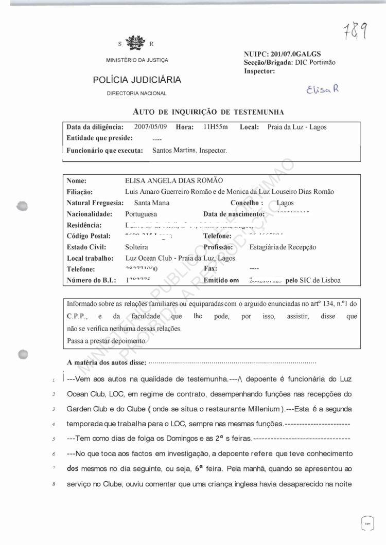 statement of Elisa Angela Dias Romao