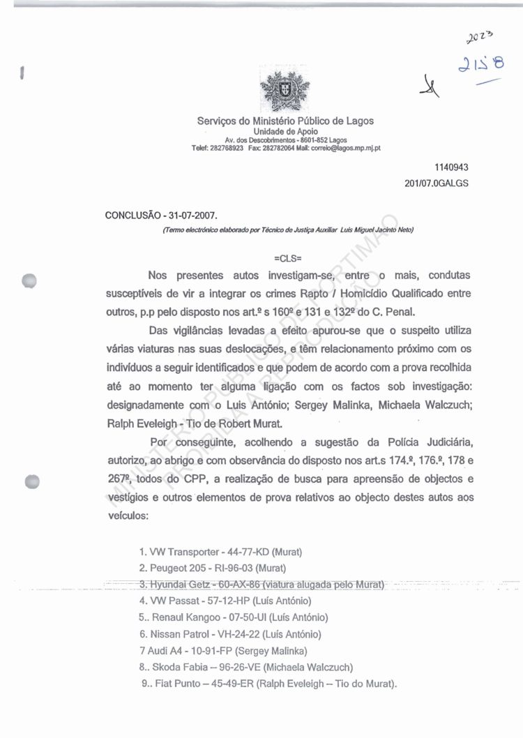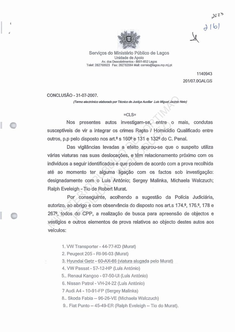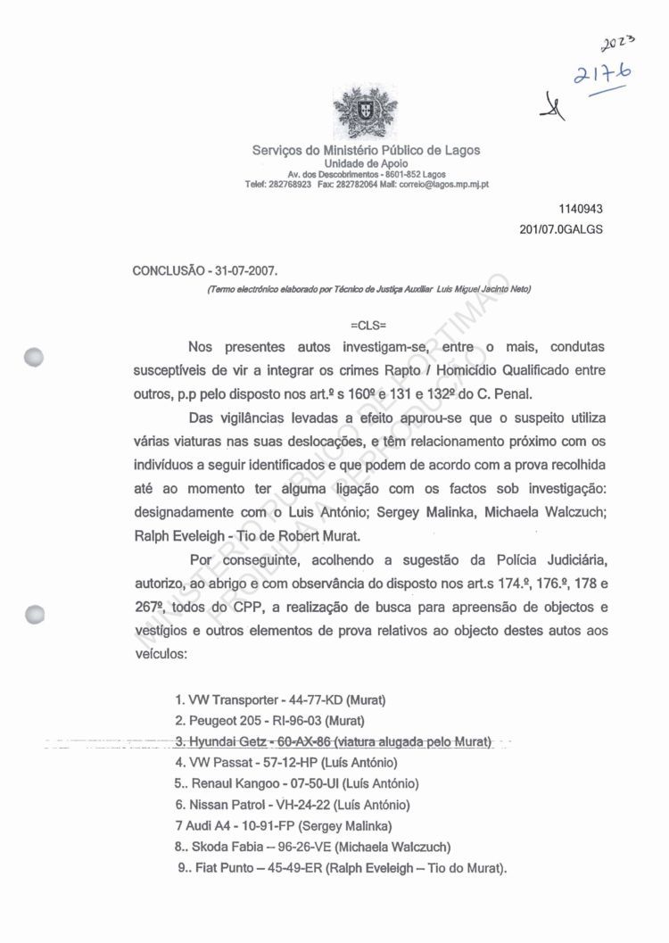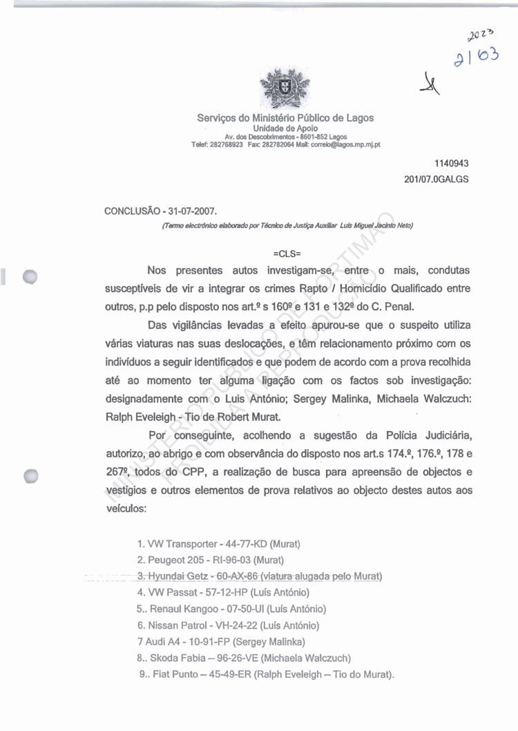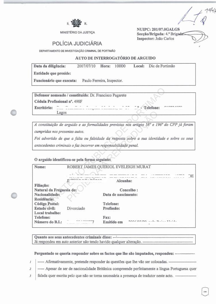 of arguido Robert Murat
