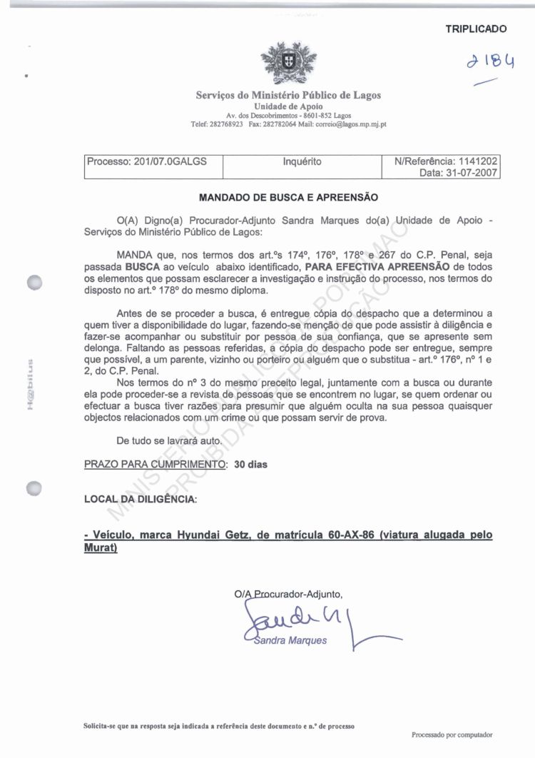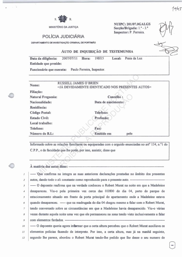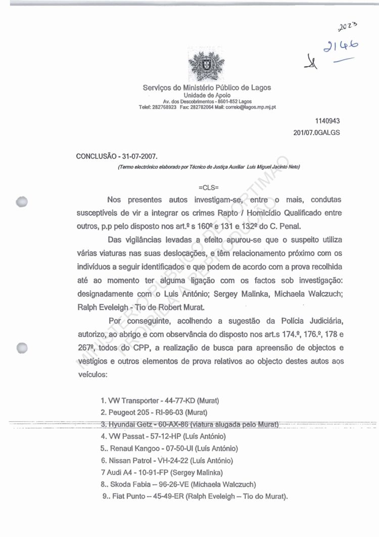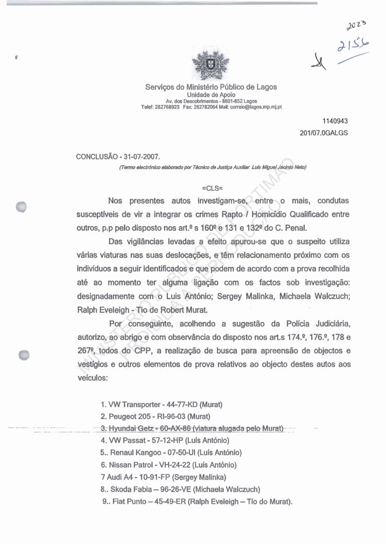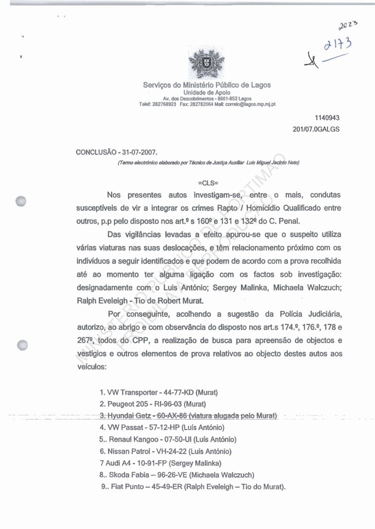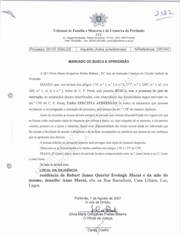 of arguido Robert Murat