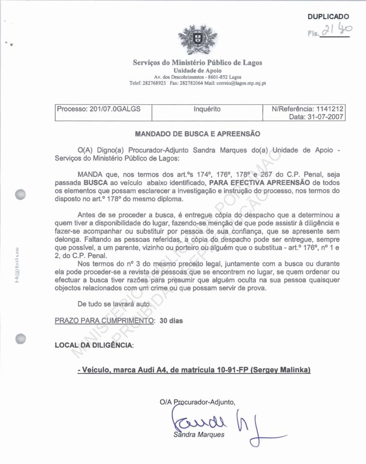 This information belongs to the Ministério Público in