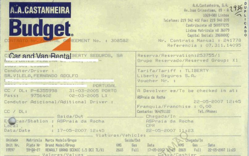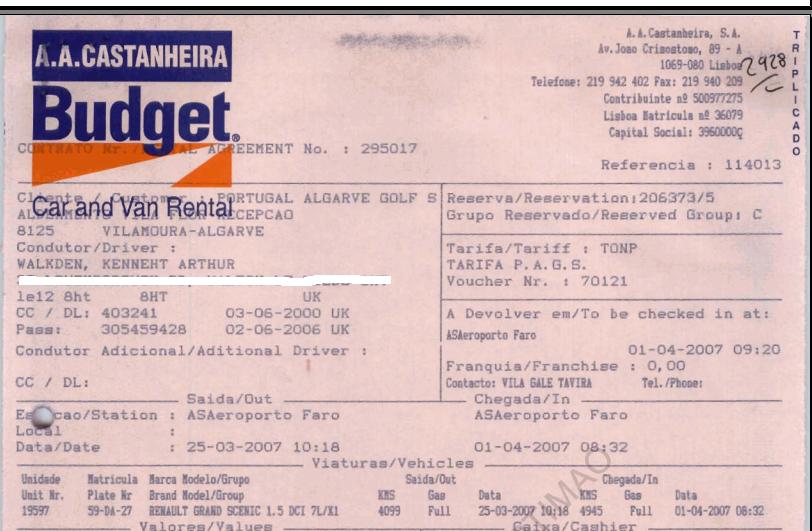 OFFICIAL INQUIRY FILES and DOCUMENTSCAR RENTAL CONTRACTS