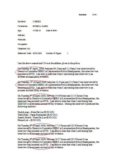 RUSSELL JAMES O'BRIEN SIGNED STATEMENT 08/04/08