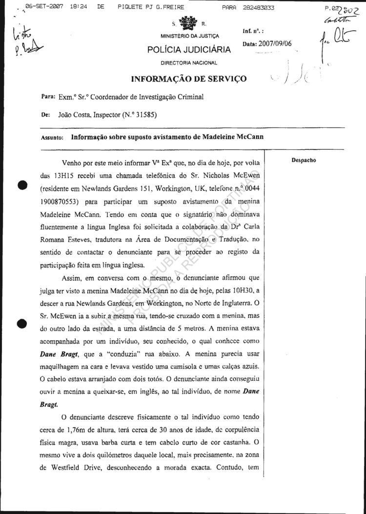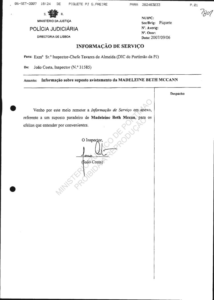 Your reference: Disappearance of Madeleine Beth