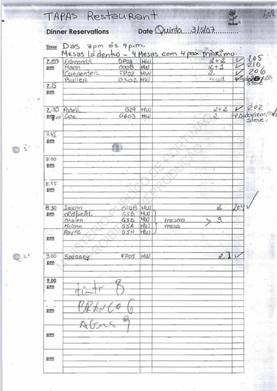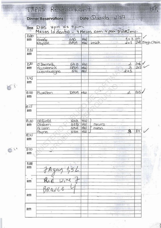 OC Check-in lists used by Tapas restaurant