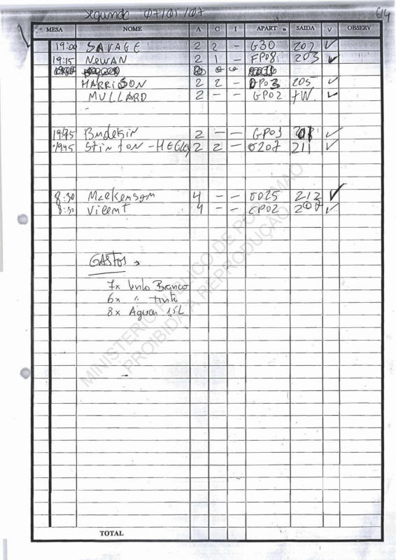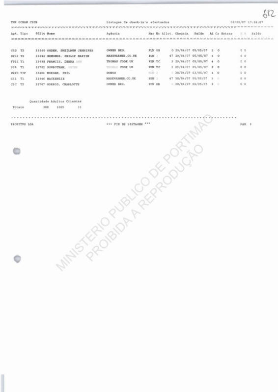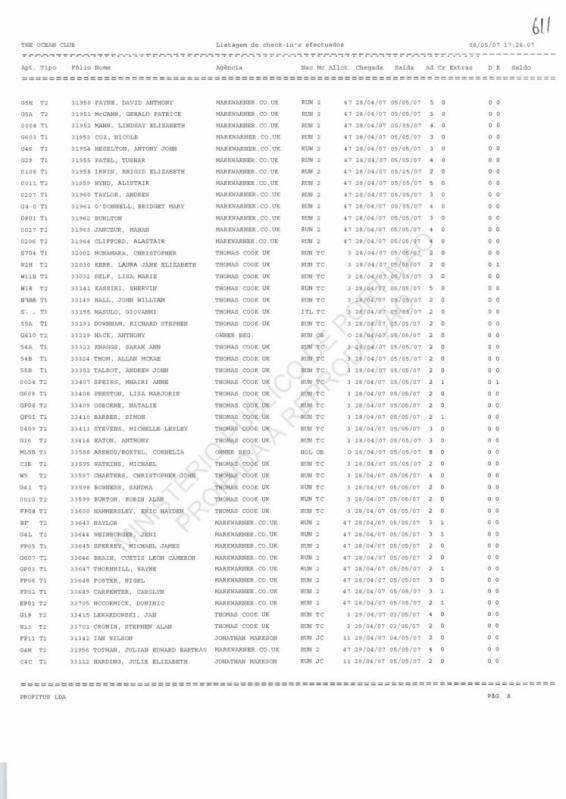 THE OCEAN CLUB List of check-in's |