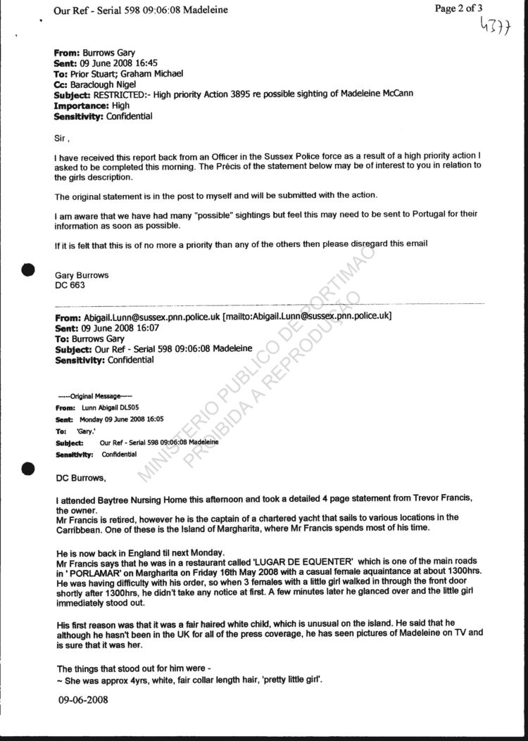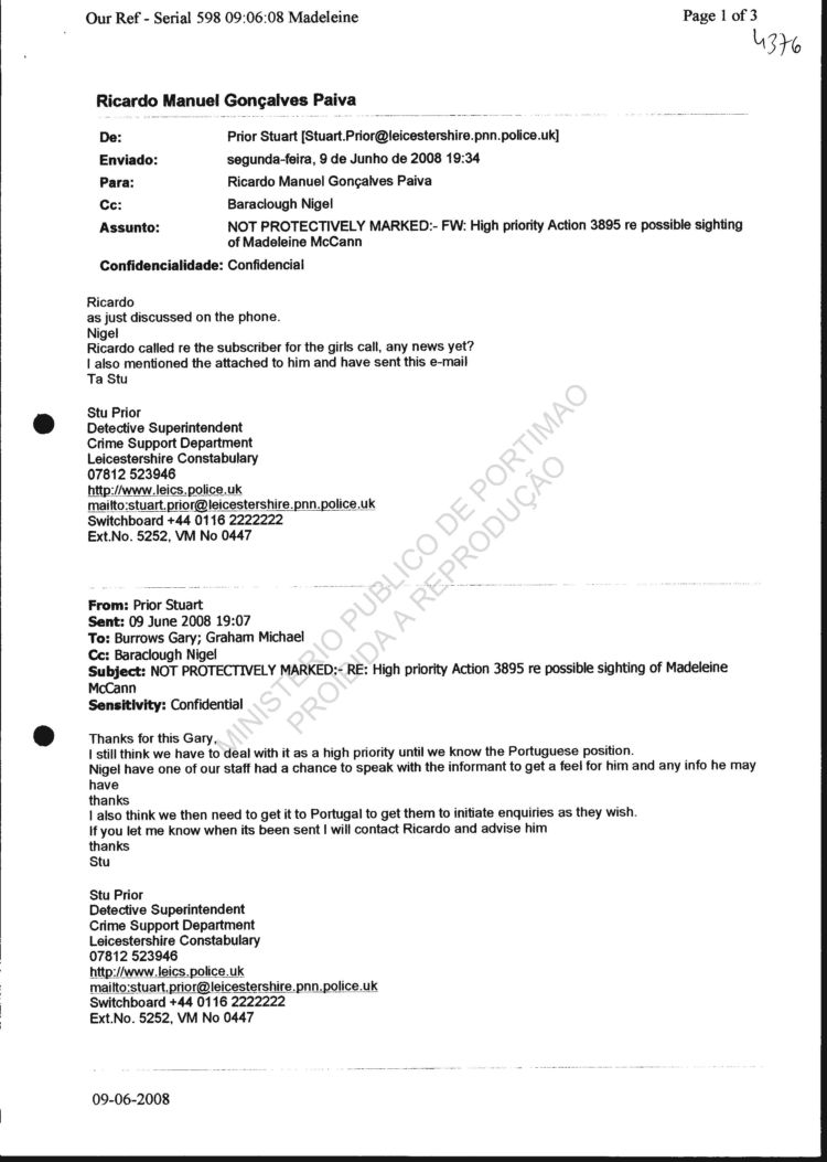 4376 to 4379 Email from Stuart Prior to PJ re: possible sighting
