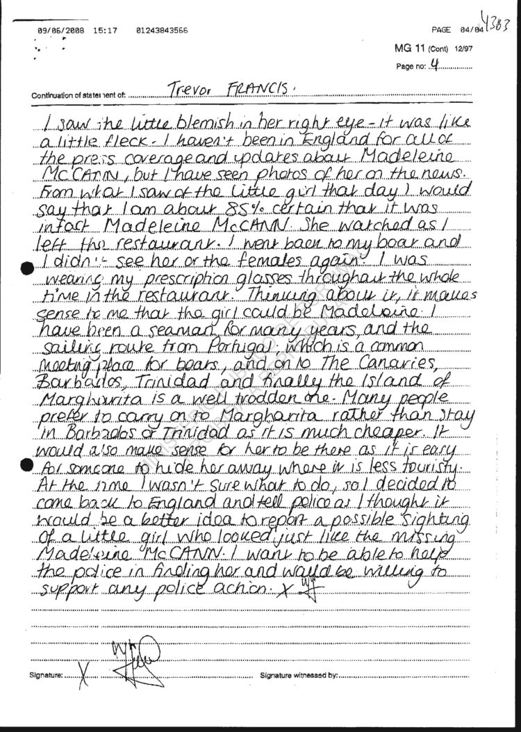 pictures of Madeleine on TV and is sure that it was her.